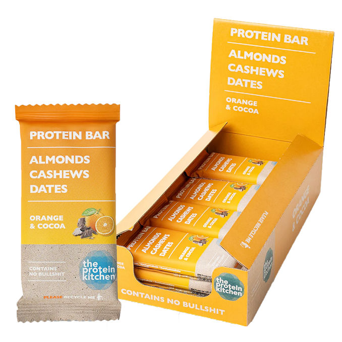 En proteinbar behøver ikke at være kompliceret. Den behøver heller ikke indeholde tilsætningsstoffer. Protein Bar fra The Protein Kitchen indeholder kun få, men meget gode ingredienser. Her er der ingen kunstige sødestoffer eller farvestoffer og intet tilsat sukker. En god, naturlig bar med højt proteinindhold.