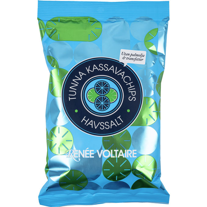 Sprøde chips lavet af kassava, som giver en let og naturligt god smag. De er nænsomt friteret i solsikkeolie og smagt til med havsalt, hvilket giver en enkel og smagfuld snack uden palmeolie eller transfedt.