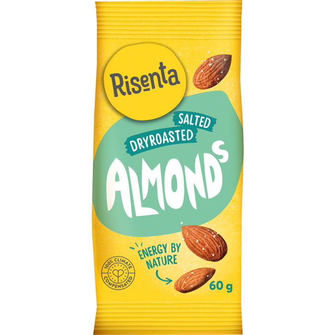 Tørristede og letsaltede mandler i fleksibel pose. Perfekt snack og energibooster til enhver tid på dagen.