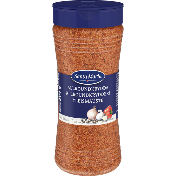 Santa Maria Allroundkrydderi er en alsidig krydderiblanding, der fremhæver smagen i alt fra kød og kylling til kartofler og sammenkogte retter. Med sin balancerede blanding af blandt andet salt, paprika og peber er den en uundværlig klassiker i køkkenet, der gør det nemt at give maden en god grundsmag.