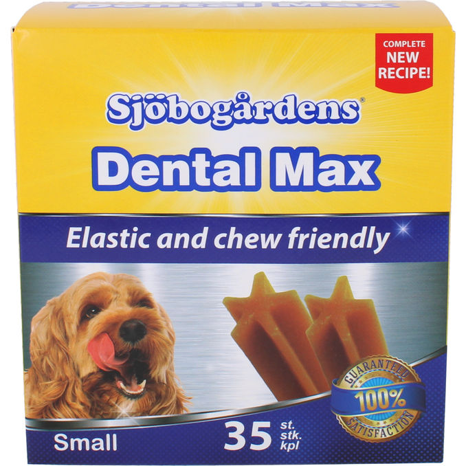 Sjöbogårdens Dental Small Max Box 28-pak er en praktisk månedspakke med tandplejesnacks, der er specielt udviklet til mindre hunde. De unikke former og den seje tekstur hjælper med at reducere dannelsen af plak og tandsten, når hunden tygger, hvilket bidrager til en sundere mundhygiejne og en friskere ånde.