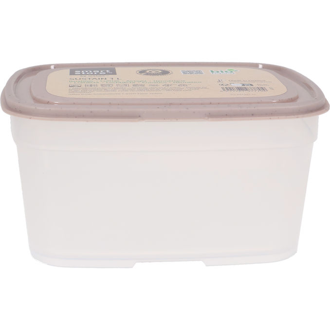 Rektangulær, lufttæt beholder, der rummer 1 L og holder maden frisk i længere tid. Den BPA-fri beholder tåler opvaskemaskine, mikroovn og fryser. Bruges uden låg i mikroovnen. Kan stables i og på størrelserne 0,5 L og 0,8 L i samme serie. Plasten i dette produkt er 80% biobaseret.