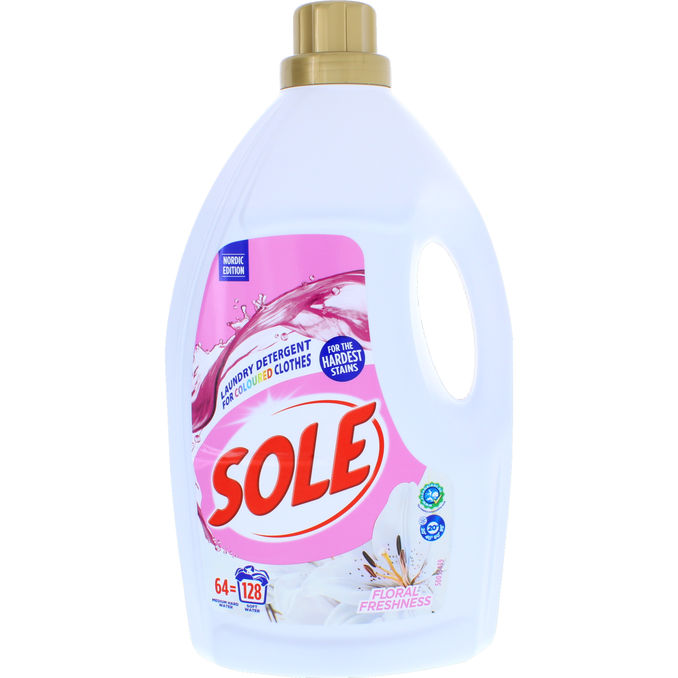 Sole Flydende Vaskemiddel Kulørt Vask 2,88 L er et effektivt flydende vaskemiddel specielt udviklet til kulørt tøj, der bekæmper selv vanskelige pletter. Det sikrer en skinnende ren vask og hjælper med at bevare tøjets farve over tid.