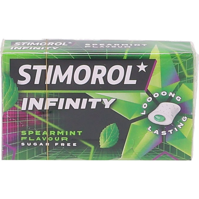 Stimorol Infinity Spearmint Tyggegummi 22 g er et sukkerfrit tyggegummi med en intens og langvarig smag af frisk spearmint. Den praktiske pakke er nem at have med i lommen eller tasken, så du altid kan få en frisk ånde.