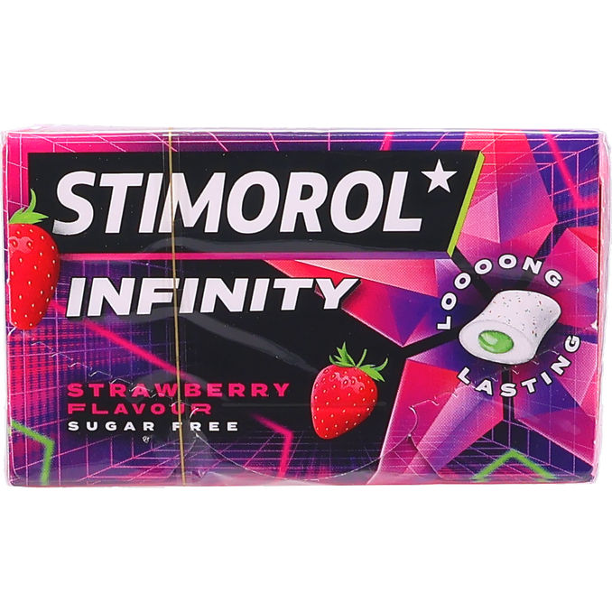 Stimorol Tyggegummi Infinity Strawberry 22 g er sukkerfrit tyggegummi med en langvarig og intens smag af friske jordbær. Den kompakte pakke på 22 g passer perfekt i lommen til hurtig opfriskning i løbet af dagen.