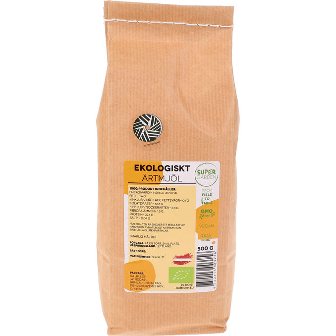 Øko Ærtemel er et næringsrigt mel, der er lavet af økologiske ærter og er et glimrende alternativ til traditionelt mel. Det er perfekt til at bruge i bagværk, pandekager, saucer eller som en proteinrig base for plantebaserede retter. Kan indeholde gluten.