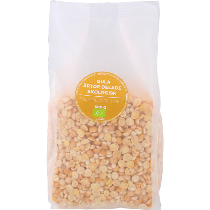 Økologiske og flækkede gule ærter i en 500 g pose. Perfekt til at lave suppe med eller som et ekstra skud protein i maden.