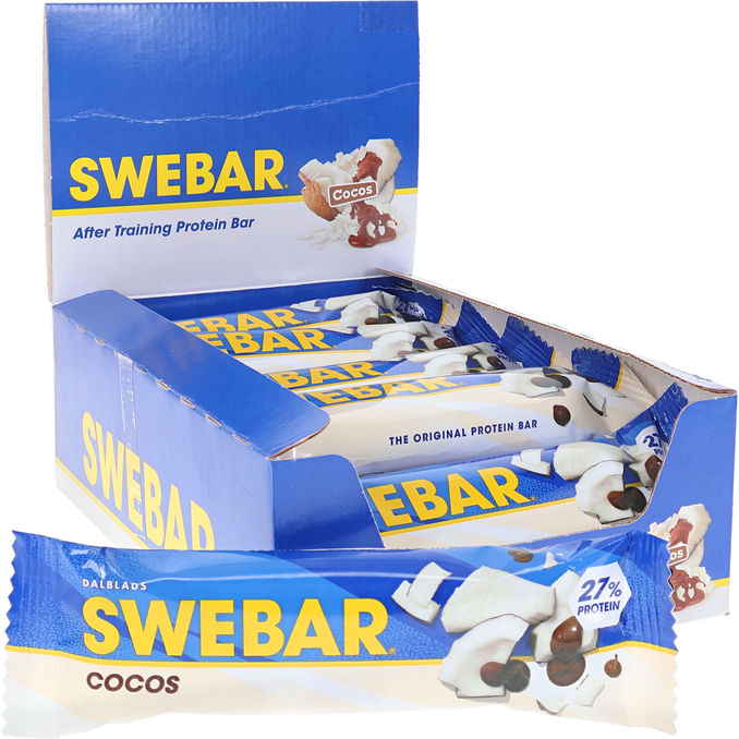 Swebar Cocos er en proteinbar, som er god at tage som restitution efter en træningssession. Swebar indeholder Dalblads "Three in one" proteinmix, som er baseret på tre forskellige proteinkilder, hvor valleprotein danner basis. Proteinkilden absorberes hurtigt og når musklerne med det samme, hvilket forsyner musklerne med aminosyrer, der er nødvendige for reparation og opbygning.
