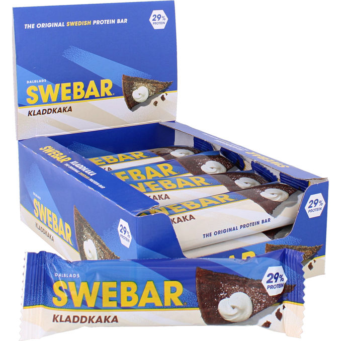 Swebar Chokoladekage Proteinbarer er en 15-pak med proteinbarer, der har en fyldig smag af klassisk svensk chokoladekage. Hver bar har et højt indhold af valleprotein og en blød tekstur, hvilket gør dem velegnede som en hurtig proteinkilde efter træning eller som et mættende mellemmåltid i hverdagen.