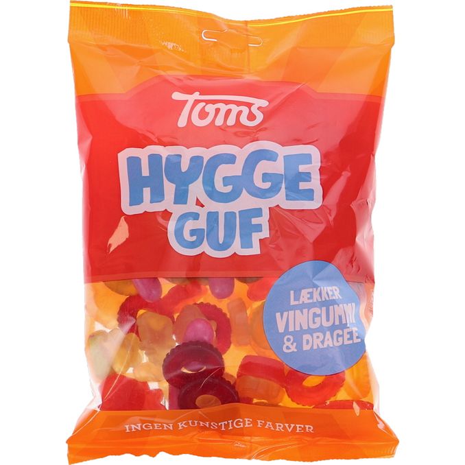 Hygge Guf fra Toms er en skøn og farverig blanding af blød vingummi og sprød sukkerdragée. Det er en slikblanding for enhver smag – både til dem, der elsker den klassiske bløde vingummi og kombinationen af sød lakrids med et sprødt sukkerovertræk. Nyd Hygge Guf fra Toms på farten, eller tilføj dem til slikskålen sammen med andre favoritter.