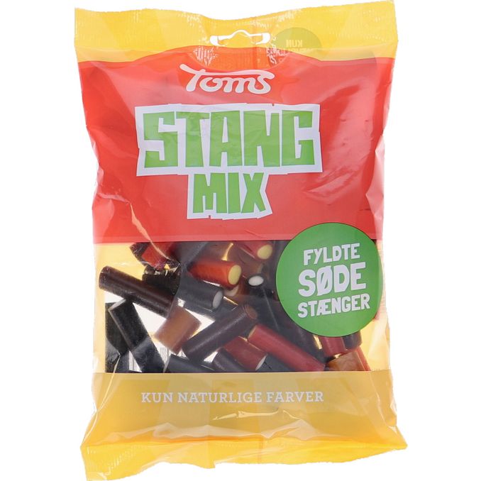 Toms Stang Mix er en lækker symfoni af fyldte lakridsstænger i små, mundrette bidder. I posen finder du chokofant, tivoli, karamella og ama’r. Hæld Stang Mix op i en skål og server lækkerierne til en god film – så er weekendhyggen sikret.