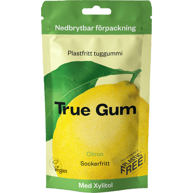 Naturligt sukkerfrit tyggegummi med citronsmag. Ingen kunstige ingredienser, ingen tilsat sukker og ingen plastik at tygge på.