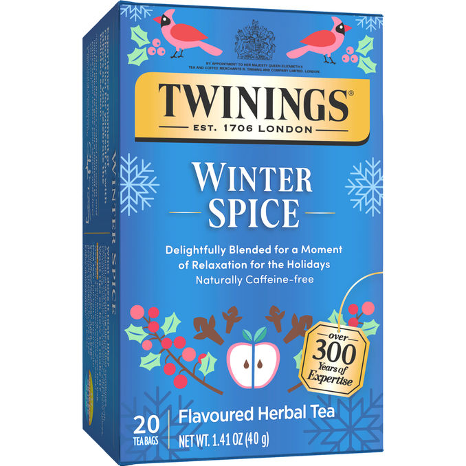 Twinings Winter Spice er en varmende sort te, der er smagsat med æble og kamille fx. Den fyldige smag er skabt til at give hygge i de kolde måneder og fungerer særdeles godt sammen med en smule mælk eller honning.