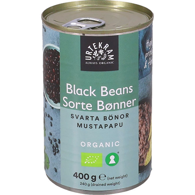 Urtekram Sorte Bønner er økologiske bønner på dåse, der er rige på både proteiner og kostfibre. De er spiseklare direkte fra dåsen efter afdrypning og er ideelle til brug i alt fra mexicanske retter og salater til gryderetter eller som base i vegetariske bøffer.