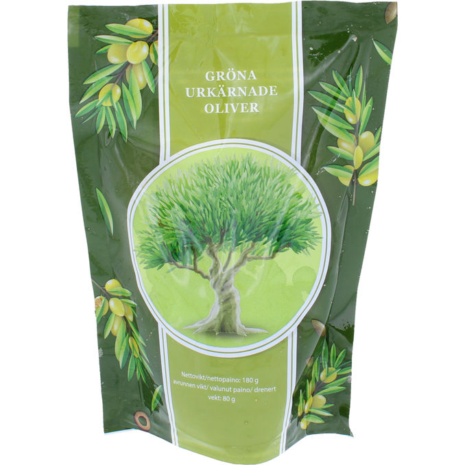 WH Grønne Stenfri Oliven 80 g er saftige og velsmagende grønne oliven uden sten, der er perfekte som en alsidig ingrediens eller en lækker snack. De er ideelle til at tilføre en middelhavsinspireret smag til salater, tapas eller som en nem og elegant snack.